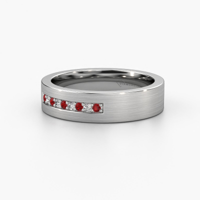 This modern ladies wedding ring is a stunning, contemporary wedding ring which truly symbolizes your unique love! Perfectly suited for men with a contemporary style. Simply customize the ring to your liking. Our goldsmith would take on any challenge of creating a perfect ring and will work on your ring, designed by you, in our own artisan studio. He will carefully and passionately create your WH0113L15BM wedding ring by hand whilst using the most modern techniques, combined with pure craftsmanship. And this results in a unique, contemporary ring! This modern WH0113L15BM wedding ring is set with round ruby, is ±0.20 in wide and has a matte finish. Gold represents love and therefore our goldsmith loves using it in the design of your modern wedding ring. We are a proud member of the Responsible Jewellery Council. This means we only use eco-friendly gold. Something we take great pride in, obviously. It is also possible to use your own gold in the design of your wedding ring. Each jewel is made by hand in our own artisan studio so we can offer this option. This gives you the opportunity to add an extra personal touch to your ring. A ring with its own history!By the way, you can be inspired by this wedding ring and have it further adjusted to your taste. Do you prefer a smaller band or a wider one? Do you prefer a shiny ring or a matte one? Anything is possible. Also, if you have an idea of your own for extraordinary wedding rings, or if you have seen a beautiful set somewhere else that you really like and would like to have adjusted to your personal taste: no problem! don't hesitate to contact us. Our designers will gladly discuss your possibilities with you!Because we design our wedding rings ourselves, and deliver it directly to you, we can offer you wedding rings at a price you won't find anywhere else. Our rings are made to order, which helps prevent excess supplies, so we can make you a great price offer.To make it easier for you, we offer a 30 day return policy. Check our terms and conditions.
