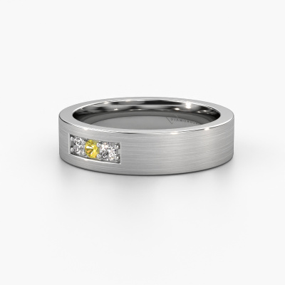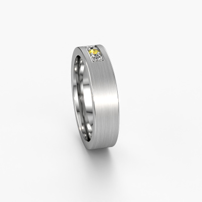 To create your ladies wedding ring in our artisan studio, we use the most modern techniques, combined with ancient craftsmanship. The end result is this modern WH0110L15BM wedding ring, which is crafted to perfection by hand by our goldsmiths. A ring that fills us with pride. This platinum WH0110L15BM ladies wedding ring with flat profile has an ±0.20 in width and has a mat/shiny finish with yellow sapphire. You can choose the combination of precious metals of your preference in our online tool. Anything goes! It is wise to browse through the characteristics of each different precious metal. For example, gold and silver are softer metals. Carat is determined by the amount of added extra metals. If the goldsmith doesn't add a lot, carat is higher and the wedding ring will be softer. If he adds more metals, the jewel has a lower amount of carat. A softer precious metal can still be used for your modern wedding ring! If you prefer a precious metal which will last a lifetime, we recommend platinum. This is the most solid and durable metal our goldsmith uses.This wedding ring can also serve as a source of inspiration. Would you like the ring to have a matte or shiny finish (at no additional cost), or would you prefer it to be wider or narrower? Anything is possible. Because there are countless variations, we can’t show everything on our website. Do you have an idea for beautiful wedding rings, or have you seen a stunning set of wedding rings elsewhere? Feel free to contact us; our designers are ready to assist you.By combining our modern techniques with ancient crafting, we can design and customize the finest quality jewels with the utmost care for you at the best price. Our wedding rings are always priced 30% lower than those of other jewellers. We make wedding rings to order so we don't have to maintain a large stock.To make it easier for you, we offer a 30 day return policy. Check our terms and conditions.