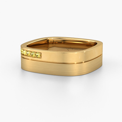 An extraordinary square ladies wedding ring! As unique as your relationship! No two people are alike and that is why you want a unique wedding ring. This unique WH6030L16A wedding ring is made by our jewel designers and crafted by hand by our goldsmith. In that process, We use pure craftsmanship combined with the latest techniques to achieve the best result. Our goldsmith strives for absolute perfection. A unique, handmade wedding ring, made to memorialize your big day! This unique WH6030L16A wedding ring is set with yellow sapphire, is ±0.24 in wide and has a mat/shiny finish. The jewel designer, member of a specialized team, will make a graphic 3D design of your wedding ring. If it pleases you, you can also order a ring dummy so you can try it on and see your ring before creation. Subsequently, our goldsmith will create your unique wedding ring with great care in our own crafting studio. A meticulous job, because both creating as well as finishing your ring requires a keen eye. And that is what makes our craft special. Your unique wedding ring is the result of true passionate craftsmanship!Do you have special preferences regarding your wedding ring? For instance, a smaller or a wider band? Or perhaps a shiny or a matte ring? There are numerous variations possible. You can always discuss the possibilities with our jewellery designers. If you have certain wedding rings in mind, our designers will gladly help by drawing the rings of your dreams. Be sure to contact us!After receiving your order, our goldsmiths will start the creative process of making your wedding rings in our own crafting studio. We don't keep stock. This is advantageous because these costs will not be passed on to you. Therefore, we can offer the finest quality jewellery at exceptionally low prices.To make it easier for you, we offer a 30 day return policy. Check our terms and conditions.