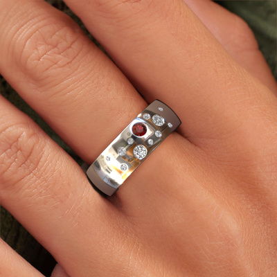 If you are looking for an exclusive, fantasy wedding ring with an exquisite look, this ring is perfect for you. Because it can be customized to your style, this wedding ring can be turned into a unique, exclusive piece of jewellery. This fantasy ladies wedding ring is a perfect combination of ancient craftsmanship, love, passion and the latest modern techniques. This fantasy WH0141L26BP wedding ring is set with garnet 3 mm, is ±0.28 in wide and has a shiny finish. Simply customize your gemstones and colours with our online tool. Our jewel designers will make a 3D drawing of your design, so you can see the result. Our goldsmiths will subsequently make your wedding ring by hand, according ancient craftsmanship. Our goal is to make the wedding ring you have in mind. A unique wedding ring to match your style completely!Do you have specific wishes? Like a shiny ring, or a matte one? A wider band, or a smaller one? The possibilities of this wedding ring are endless. Be sure to contact our designers to adjust your ring to your personal taste. Did you see a ring somewhere, or do you have some special ideas of your own? Then don't hesitate to contact our designers and discuss your ideas for your own set of beautiful wedding rings. We are up for the challenge of creating the ring exactly the way you want it!After receiving your order, our goldsmiths will start the creative process of making your wedding rings in our own crafting studio. We don't keep stock. This is advantageous because these costs will not be passed on to you. Therefore, we can offer the finest quality jewellery at exceptionally low prices.To make it easier for you, we offer a 30 day return policy. Check our terms and conditions.