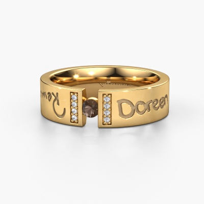 A unique wedding ring with smokey quartz! What makes this ladies wedding ring WH2094L16C special, is that you can have it engraved with a special text, which has meaning to you. A word, a short phrase or part of the lyrics to a song. Whichever text is most meaningful to you. Memorialize it as an exquisite engravement on this modern wedding ring. This own Text ladies wedding ring has an ±0.24 in width. You can choose the combination of precious metals of your preference in our online tool. Anything goes! It is wise to browse through the characteristics of each different precious metal. For example, gold and silver are softer metals. Carat is determined by the amount of added extra metals. If the goldsmith doesn't add a lot, carat is higher and the wedding ring will be softer. If he adds more metals, the jewel has a lower amount of carat. A softer precious metal can still be used for your modern wedding ring! If you prefer a precious metal which will last a lifetime, we recommend platinum. This is the most solid and durable metal our goldsmith uses.This wedding ring can also serve as a source of inspiration. Would you like the ring to have a matte or shiny finish (at no additional cost), or would you prefer it to be wider or narrower? Anything is possible. Because there are countless variations, we can’t show everything on our website. Do you have an idea for beautiful wedding rings, or have you seen a stunning set of wedding rings elsewhere? Feel free to contact us; our designers are ready to assist you.By combining our modern techniques with ancient crafting, we can design and customize the finest quality jewels with the utmost care for you at the best price. Our wedding rings are always priced 30% lower than those of other jewellers. We make wedding rings to order so we don't have to maintain a large stock.To make it easier for you, we offer a 30 day return policy. Check our terms and conditions.