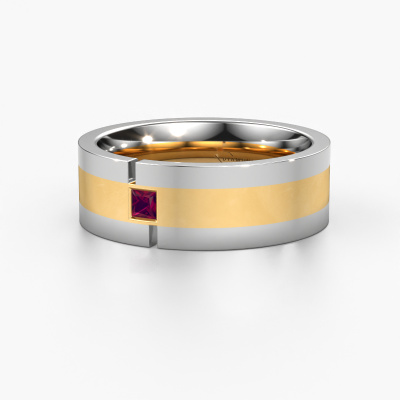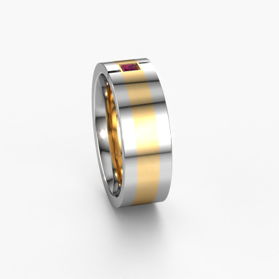 An extraordinary 2 colour ladies wedding ring! As unique as your relationship! No two people are alike and that is why you want a unique wedding ring. This exclusive WH2042P wedding ring is made by our jewel designers and crafted by hand by our goldsmith. In that process, We use pure craftsmanship combined with the latest techniques to achieve the best result. Our goldsmith strives for absolute perfection. A unique, handmade wedding ring, made to memorialize your big day! This exclusive WH2042P wedding ring is set with rhodolite, is ±0.28 in wide and has a shiny finish. The jewel designer, member of a specialized team, will make a graphic 3D design of your wedding ring. If it pleases you, you can also order a ring dummy so you can try it on and see your ring before creation. Subsequently, our goldsmith will create your unique wedding ring with great care in our own crafting studio. A meticulous job, because both creating as well as finishing your ring requires a keen eye. And that is what makes our craft special. Your unique wedding ring is the result of true passionate craftsmanship!Do you have specific wishes? Like a shiny ring, or a matte one? A wider band, or a smaller one? The possibilities of this wedding ring are endless. Be sure to contact our designers to adjust your ring to your personal taste. Did you see a ring somewhere, or do you have some special ideas of your own? Then don't hesitate to contact our designers and discuss your ideas for your own set of beautiful wedding rings. We are up for the challenge of creating the ring exactly the way you want it!After receiving your order, our goldsmiths will start the creative process of making your wedding rings. We don't keep stock. This is advantageous because these costs will not be passed on to you. Therefore, our quality wedding rings are always priced 30 percent lower than those of other jewellers.To make it easier for you, we offer a 30 day return policy. Check our terms and conditions.