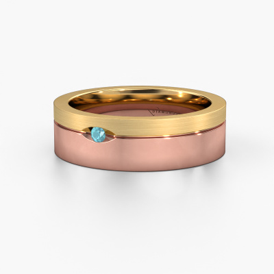 A truly stylish 14 Carat modern wedding ring! This exquisite ladies wedding ring, as shown above, is set with round blue topaz. Our goldsmiths make each rose gold wedding ring by hand in our own artisan studio and because of that, the blue topaz are set with the utmost precision. This causes light to reflect evenly from every angle of the blue topaz. The width of this modern WH0329L16B wedding ring is ±0.24 in and the finish is mat/shiny. Simply customize your gemstones and colours with our online tool. Our jewel designers will make a 3D drawing of your design, so you can see the result. Our goldsmiths will subsequently make your wedding ring by hand, according ancient craftsmanship. Our goal is to make the wedding ring you have in mind. A unique wedding ring to match your style completely!This wedding ring can also serve as a source of inspiration. Would you like the ring to have a matte or shiny finish (at no additional cost), or would you prefer it to be wider or narrower? Anything is possible. Because there are countless variations, we can’t show everything on our website. Do you have an idea for beautiful wedding rings, or have you seen a stunning set of wedding rings elsewhere? Feel free to contact us; our designers are ready to assist you.Because we design and deliver our own wedding rings, we can offer you wedding rings at a price you won't find anywhere else. A ring is made to order, which helps prevent excess supplies, so we can make you a great price offer.To make it easier for you, we offer a 30 day return policy. Check our terms and conditions.