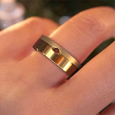 A truly stylish 14 Carat modern wedding ring! This exquisite ladies wedding ring, as shown above, is set with round garnet. Our goldsmiths make each gold wedding ring by hand in our own artisan studio and because of that, the garnet are set with the utmost precision. This causes light to reflect evenly from every angle of the garnet. The width of this modern WH0329L16B wedding ring is ±0.24 in and the finish is mat/shiny. Simply customize your gemstones and colours with our online tool. Our jewel designers will make a 3D drawing of your design, so you can see the result. Our goldsmiths will subsequently make your wedding ring by hand, according ancient craftsmanship. Our goal is to make the wedding ring you have in mind. A unique wedding ring to match your style completely!This wedding ring can also serve as a source of inspiration. Would you like the ring to have a matte or shiny finish (at no additional cost), or would you prefer it to be wider or narrower? Anything is possible. Because there are countless variations, we can’t show everything on our website. Do you have an idea for beautiful wedding rings, or have you seen a stunning set of wedding rings elsewhere? Feel free to contact us; our designers are ready to assist you.Because we design and deliver our own wedding rings, we can offer you wedding rings at a price you won't find anywhere else. A ring is made to order, which helps prevent excess supplies, so we can make you a great price offer.To make it easier for you, we offer a 30 day return policy. Check our terms and conditions.