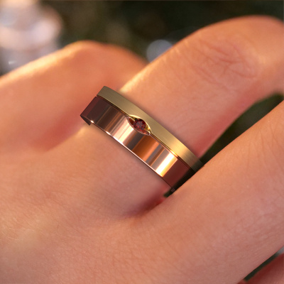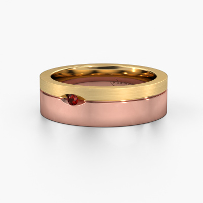 A truly stylish 14 Carat modern wedding ring! This exquisite ladies wedding ring, as shown above, is set with round garnet. Our goldsmiths make each rose gold wedding ring by hand in our own artisan studio and because of that, the garnet are set with the utmost precision. This causes light to reflect evenly from every angle of the garnet. The width of this modern WH0329L16B wedding ring is ±0.24 in and the finish is mat/shiny. Simply customize your gemstones and colours with our online tool. Our jewel designers will make a 3D drawing of your design, so you can see the result. Our goldsmiths will subsequently make your wedding ring by hand, according ancient craftsmanship. Our goal is to make the wedding ring you have in mind. A unique wedding ring to match your style completely!This wedding ring can also serve as a source of inspiration. Would you like the ring to have a matte or shiny finish (at no additional cost), or would you prefer it to be wider or narrower? Anything is possible. Because there are countless variations, we can’t show everything on our website. Do you have an idea for beautiful wedding rings, or have you seen a stunning set of wedding rings elsewhere? Feel free to contact us; our designers are ready to assist you.Because we design and deliver our own wedding rings, we can offer you wedding rings at a price you won't find anywhere else. A ring is made to order, which helps prevent excess supplies, so we can make you a great price offer.To make it easier for you, we offer a 30 day return policy. Check our terms and conditions.