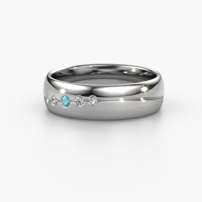 What a perfect combination of two different precious metals. They seem to reinforce each other in the luxury design of this ring! Our goldsmith would be honoured to create a unique ring for you, customized to your liking. Each ladies wedding ring we offer is artfully crafted by hand in our own artisan studio. That makes it possible for us to turn luxury into reality and helps create your own personal ring, customized to your style. This luxury WH0925L36APM ladies wedding ring is set with round blue topaz, is ±0.24 in wide and has a mat/shiny finish. You can choose the combination of precious metals of your preference in our online tool. Anything goes! It is wise to browse through the characteristics of each different precious metal. For example, gold and silver are softer metals. Carat is determined by the amount of added extra metals. If the goldsmith doesn't add a lot, carat is higher and the wedding ring will be softer. If he adds more metals, the jewel has a lower amount of carat. A softer precious metal can still be used for your luxury wedding ring! If you prefer a precious metal which will last a lifetime, we recommend platinum. This is the most solid and durable metal our goldsmith uses.This wedding ring can also serve as a source of inspiration. Would you like the ring to have a matte or shiny finish (at no additional cost), or would you prefer it to be wider or narrower? Anything is possible. Because there are countless variations, we can’t show everything on our website. Do you have an idea for beautiful wedding rings, or have you seen a stunning set of wedding rings elsewhere? Feel free to contact us; our designers are ready to assist you.Because we design and deliver our own wedding rings, we can offer you wedding rings at a price you won't find anywhere else. A ring is made to order, which helps prevent excess supplies, so we can make you a great price offer.To make it easier for you, we offer a 30 day return policy. Check our terms and conditions.