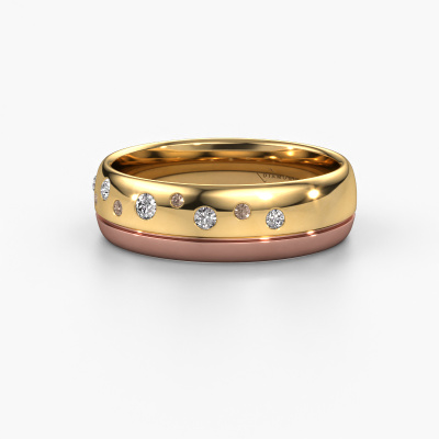 A unique ladies wedding ring, especially designed by our own jewel designers. An unusual ring that matches each style. This fantasy wedding ring WH0317L36AP is made by hand by our goldsmiths in our own crafting studio. By using a combination of the most modern techniques and ancient craftsmanship, your WH0317L36AP ring is created to perfection. This ladies wedding ring has an ±0.24 in width and has a shiny finish. Here, the fantasy gold wedding ring is shown in the combination gold with rose gold. An exquisite wedding ring, a celebration of your wedding day!You can choose the combination of precious metals of your preference in our online tool. Anything goes! It is wise to browse through the characteristics of each different precious metal. For example, gold and silver are softer metals. Carat is determined by the amount of added extra metals. If the goldsmith doesn't add a lot, carat is higher and the wedding ring will be softer. If he adds more metals, the jewel has a lower amount of carat. A softer precious metal can still be used for your fantasy wedding ring! If you prefer a precious metal which will last a lifetime, we recommend platinum. This is the most solid and durable metal our goldsmith uses.Be inspired by our designs, and adjust this wedding ring to your own personal taste: wider or smaller, shiny or matte? No problem! Even if you have ideas of your own for special wedding rings, our jewellery designers are lined up to help you design the ring of your dreams. don't hesitate to contact us!After receiving your order, our goldsmiths will start the creative process of making your wedding rings. We don't keep stock. This is advantageous because these costs will not be passed on to you. Therefore, our quality wedding rings are always priced 30 percent lower than those of other jewellers.To make it easier for you, we offer a 30 day return policy. Check our terms and conditions.