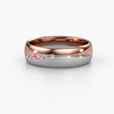 What a perfect combination of two different precious metals. They seem to reinforce each other in the luxury design of this ring! Our goldsmith would be honoured to create a unique ring for you, customized to your liking. Each ladies wedding ring we offer is artfully crafted by hand in our own artisan studio. That makes it possible for us to turn luxury into reality and helps create your own personal ring, customized to your style. This luxury WH0925L36APM ladies wedding ring is set with round pink sapphire, is ±0.24 in wide and has a mat/shiny finish. You can choose the combination of precious metals of your preference in our online tool. Anything goes! It is wise to browse through the characteristics of each different precious metal. For example, gold and silver are softer metals. Carat is determined by the amount of added extra metals. If the goldsmith doesn't add a lot, carat is higher and the wedding ring will be softer. If he adds more metals, the jewel has a lower amount of carat. A softer precious metal can still be used for your luxury wedding ring! If you prefer a precious metal which will last a lifetime, we recommend platinum. This is the most solid and durable metal our goldsmith uses.This wedding ring can also serve as a source of inspiration. Would you like the ring to have a matte or shiny finish (at no additional cost), or would you prefer it to be wider or narrower? Anything is possible. Because there are countless variations, we can’t show everything on our website. Do you have an idea for beautiful wedding rings, or have you seen a stunning set of wedding rings elsewhere? Feel free to contact us; our designers are ready to assist you.Because we design and deliver our own wedding rings, we can offer you wedding rings at a price you won't find anywhere else. A ring is made to order, which helps prevent excess supplies, so we can make you a great price offer.To make it easier for you, we offer a 30 day return policy. Check our terms and conditions.