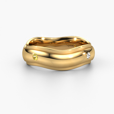 What a perfect combination of two different precious metals. They seem to reinforce each other in the unique design of this ring! Our goldsmith would be honoured to create a unique ring for you, customized to your liking. Each ladies wedding ring we offer is artfully crafted by hand in our own artisan studio. That makes it possible for us to turn unique into reality and helps create your own personal ring, customized to your style. This unique WH2050L26DP ladies wedding ring is set with round yellow sapphire, is ±0.24 in wide and has a shiny finish. After designing your ring, our jewel designer will start working on it. He will make a graphic 3D design of your wedding ring. This can also be used to make a dummy ring. Simply order a dummy ring and see for yourself how your ring will turn out. Subsequently, our expert goldsmith will create your ring in our own artisan studio. We use eco-friendly gold, so you get a ring, we are proud of, which looks good inside and out. You can also send us your own gold. Because we create your ring by hand, we can use your own gold. Our goal is to create an exquisite sparkling wedding ring just as envisioned it!Do you have specific wishes regarding your wedding ring, but are you having difficulties finding the design on our website? The be sure to contact our designers! For instance, we can make the band smaller or wider. Do you prefer a matte finish? We can do that! Engravings are a great way of personalizing your rings, and applicable on most designs. Or, if you have an idea of your own for your extraordinary wedding rings, contact us! Our designers are up for the challenge of designing the ring of your dreams!After receiving your order, our goldsmiths will start the creative process of making your wedding rings. We don't keep stock. This is advantageous because these costs will not be passed on to you. Therefore, our quality wedding rings are always priced 30 percent lower than those of other jewellers.To make it easier for you, we offer a 30 day return policy. Check our terms and conditions.