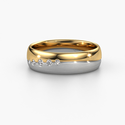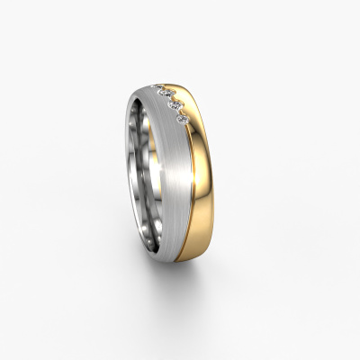 What a perfect combination of two different precious metals. They seem to reinforce each other in the luxury design of this ring! Our goldsmith would be honoured to create a unique ring for you, customized to your liking. Each ladies wedding ring we offer is artfully crafted by hand in our own artisan studio. That makes it possible for us to turn luxury into reality and helps create your own personal ring, customized to your style. This luxury WH0925L36APM ladies wedding ring is set with round zirconia, is ±0.24 in wide and has a mat/shiny finish. You can choose the combination of precious metals of your preference in our online tool. Anything goes! It is wise to browse through the characteristics of each different precious metal. For example, gold and silver are softer metals. Carat is determined by the amount of added extra metals. If the goldsmith doesn't add a lot, carat is higher and the wedding ring will be softer. If he adds more metals, the jewel has a lower amount of carat. A softer precious metal can still be used for your luxury wedding ring! If you prefer a precious metal which will last a lifetime, we recommend platinum. This is the most solid and durable metal our goldsmith uses.This wedding ring can also serve as a source of inspiration. Would you like the ring to have a matte or shiny finish (at no additional cost), or would you prefer it to be wider or narrower? Anything is possible. Because there are countless variations, we can’t show everything on our website. Do you have an idea for beautiful wedding rings, or have you seen a stunning set of wedding rings elsewhere? Feel free to contact us; our designers are ready to assist you.Because we design and deliver our own wedding rings, we can offer you wedding rings at a price you won't find anywhere else. A ring is made to order, which helps prevent excess supplies, so we can make you a great price offer.To make it easier for you, we offer a 30 day return policy. Check our terms and conditions.