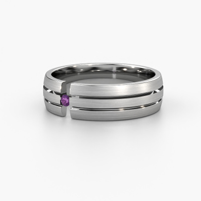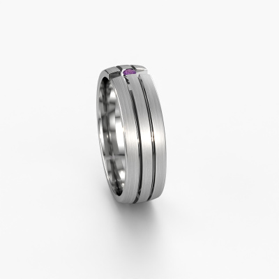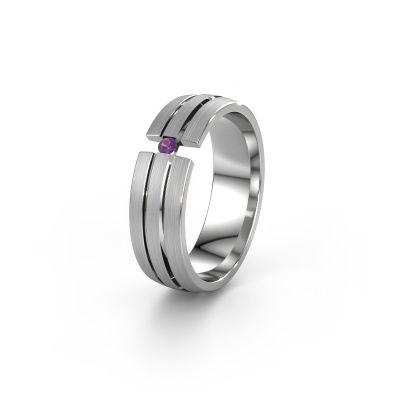 A truly stylish modern wedding ring! This exquisite ladies wedding ring, as shown above, is set with round amethyst. Our goldsmiths make each platinum wedding ring by hand in our own artisan studio and because of that, the amethysten are set with the utmost precision. This causes light to reflect evenly from every angle of the amethyst. The width of this modern WH0402L26AM wedding ring is ±0.24 in and the finish is mat. Choosing a wedding ring is not done on a whim. In the end, you want a ring that completely matches your style and preferences. A reflection of your love and relationship. A ring to last a lifetime. A symbol of all that unites you. Creating your dream ring is what gets us excited. This is artfully done by hand in our own crafting studio, so we can create your ring to perfection. The most rewarding job in the world!By the way, you can be inspired by this wedding ring and have it further adjusted to your taste. Do you prefer a smaller band or a wider one? Do you prefer a shiny ring or a matte one? Anything is possible. Also, if you have an idea of your own for extraordinary wedding rings, or if you have seen a beautiful set somewhere else that you really like and would like to have adjusted to your personal taste: no problem! don't hesitate to contact us. Our designers will gladly discuss your possibilities with you!After receiving your order, our goldsmiths will start the creative process of making your wedding rings. We don't keep stock. This is advantageous because these costs will not be passed on to you. Therefore, our quality wedding rings are always priced 30 percent lower than those of other jewellers.To make it easier for you, we offer a 30 day return policy. Check our terms and conditions.