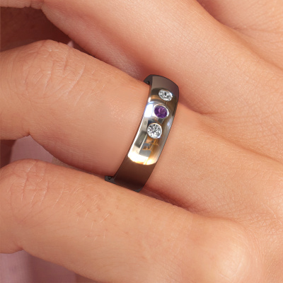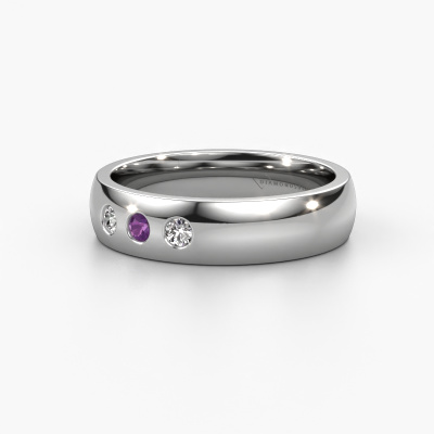 This modern shiny ladies wedding ring with court profile is an extraordinary ring to memorialize your love. A timeless wedding ring set with carefully selected amethysten. In this example, the platinum WH0114L25BP wedding ring is set with round amethyst 2.2 mm. Our goldsmiths use the latest modern techniques, combined with ancient craftsmanship and they will make your ring in our own artisan studio. Resulting in a unique, handmade ±0.20x0.08 in wedding ring, which was created to perfection, and matches your style flawlessly. After designing your ring, our jewel designer will start working on it. He will make a graphic 3D design of your wedding ring. This can also be used to make a dummy ring. Simply order a dummy ring and see for yourself how your ring will turn out. Subsequently, our expert goldsmith will create your ring in our own artisan studio. We use eco-friendly gold, so you get a ring, we are proud of, which looks good inside and out. You can also send us your own gold. Because we create your ring by hand, we can use your own gold. Our goal is to create an exquisite sparkling wedding ring just as envisioned it!Do you have special preferences regarding your wedding ring? For instance, a smaller or a wider band? Or perhaps a shiny or a matte ring? There are numerous variations possible. You can always discuss the possibilities with our jewellery designers. If you have certain wedding rings in mind, our designers will gladly help by drawing the rings of your dreams. Be sure to contact us!After receiving your order, our goldsmiths will start the creative process of making your wedding rings in our own crafting studio. We don't keep stock. This is advantageous because these costs will not be passed on to you. Therefore, we can offer the finest quality jewellery at exceptionally low prices.To make it easier for you, we offer a 30 day return policy. Check our terms and conditions.