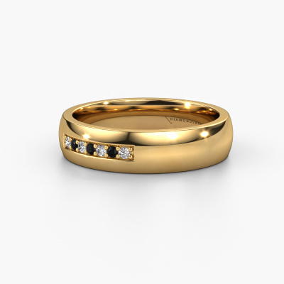 To create your ladies wedding ring in our artisan studio, we use the most modern techniques, combined with ancient craftsmanship. The end result is this modern WH0112L25BP wedding ring, which is crafted to perfection by hand by our goldsmiths. A ring that fills us with pride. This gold WH0112L25BP ladies wedding ring with court profile has an ±0.20 in width and has a shiny finish with black diamond. After designing your ring, our jewel designer will start working on it. He will make a graphic 3D design of your wedding ring. This can also be used to make a dummy ring. Simply order a dummy ring and see for yourself how your ring will turn out. Subsequently, our expert goldsmith will create your ring in our own artisan studio. We use eco-friendly gold, so you get a ring, we are proud of, which looks good inside and out. You can also send us your own gold. Because we create your ring by hand, we can use your own gold. Our goal is to create an exquisite sparkling wedding ring just as envisioned it!Do you have specific wishes regarding your wedding ring, but are you having difficulties finding the design on our website? The be sure to contact our designers! For instance, we can make the band smaller or wider. Do you prefer a matte finish? We can do that! Engravings are a great way of personalizing your rings, and applicable on most designs. Or, if you have an idea of your own for your extraordinary wedding rings, contact us! Our designers are up for the challenge of designing the ring of your dreams!Because we design our wedding rings ourselves, and deliver it directly to you, we can offer you wedding rings at a price you won't find anywhere else. Our rings are made to order, which helps prevent excess supplies, so we can make you a great price offer.To make it easier for you, we offer a 30 day return policy. Check our terms and conditions.