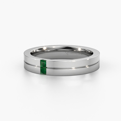 To create your ladies wedding ring in our artisan studio, we use the most modern techniques, combined with ancient craftsmanship. The end result is this modern WH0225L14B wedding ring, which is crafted to perfection by hand by our goldsmiths. A ring that fills us with pride. This white gold WH0225L14B ladies wedding ring with flat profile has an ±0.16 in width and has a shiny finish with emerald. You can choose the combination of precious metals of your preference in our online tool. Anything goes! It is wise to browse through the characteristics of each different precious metal. For example, gold and silver are softer metals. Carat is determined by the amount of added extra metals. If the goldsmith doesn't add a lot, carat is higher and the wedding ring will be softer. If he adds more metals, the jewel has a lower amount of carat. A softer precious metal can still be used for your modern wedding ring! If you prefer a precious metal which will last a lifetime, we recommend platinum. This is the most solid and durable metal our goldsmith uses.Do you have specific wishes? Like a shiny ring, or a matte one? A wider band, or a smaller one? The possibilities of this wedding ring are endless. Be sure to contact our designers to adjust your ring to your personal taste. Did you see a ring somewhere, or do you have some special ideas of your own? Then don't hesitate to contact our designers and discuss your ideas for your own set of beautiful wedding rings. We are up for the challenge of creating the ring exactly the way you want it!By combining our modern techniques with ancient crafting, we can design and customize the finest quality jewels with the utmost care for you at the best price. Our wedding rings are always priced 30% lower than those of other jewellers. We make wedding rings to order so we don't have to maintain a large stock.To make it easier for you, we offer a 30 day return policy. Check our terms and conditions.