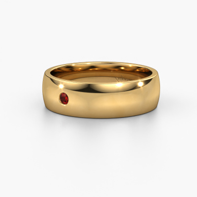 To create your ladies wedding ring in our artisan studio, we use the most modern techniques, combined with ancient craftsmanship. The end result is this modern WH0101L26AP wedding ring, which is crafted to perfection by hand by our goldsmiths. A ring that fills us with pride. This gold WH0101L26AP ladies wedding ring with court profile has an ±0.24 in width and has a shiny finish with garnet. Simply customize your gemstones and colours with our online tool. Our jewel designers will make a 3D drawing of your design, so you can see the result. Our goldsmiths will subsequently make your wedding ring by hand, according ancient craftsmanship. Our goal is to make the wedding ring you have in mind. A unique wedding ring to match your style completely!Do you have special preferences regarding your wedding ring? For instance, a smaller or a wider band? Or perhaps a shiny or a matte ring? There are numerous variations possible. You can always discuss the possibilities with our jewellery designers. If you have certain wedding rings in mind, our designers will gladly help by drawing the rings of your dreams. Be sure to contact us!Because we design and deliver our own wedding rings, we can offer you wedding rings at a price you won't find anywhere else. A ring is made to order, which helps prevent excess supplies, so we can make you a great price offer.To make it easier for you, we offer a 30 day return policy. Check our terms and conditions.