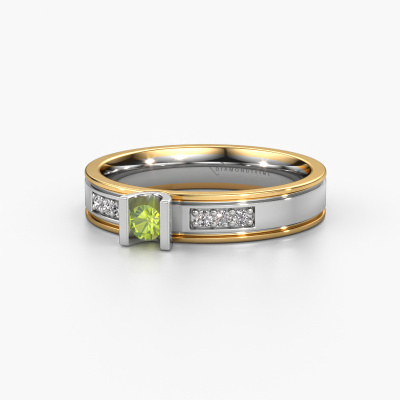 This modern ladies wedding ring is a stunning, contemporary wedding ring which truly symbolizes your unique love! Perfectly suited for men with a contemporary style. Simply customize the ring to your liking. Our goldsmith would take on any challenge of creating a perfect ring and will work on your ring, designed by you, in our own artisan studio. He will carefully and passionately create your WH2108L14A wedding ring by hand whilst using the most modern techniques, combined with pure craftsmanship. And this results in a unique, contemporary ring! This modern WH2108L14A wedding ring is set with round peridot, is ±0.16 in wide and has a shiny finish. You can choose the combination of precious metals of your preference in our online tool. Anything goes! It is wise to browse through the characteristics of each different precious metal. For example, gold and silver are softer metals. Carat is determined by the amount of added extra metals. If the goldsmith doesn't add a lot, carat is higher and the wedding ring will be softer. If he adds more metals, the jewel has a lower amount of carat. A softer precious metal can still be used for your modern wedding ring! If you prefer a precious metal which will last a lifetime, we recommend platinum. This is the most solid and durable metal our goldsmith uses.Be inspired by our designs, and adjust this wedding ring to your own personal taste: wider or smaller, shiny or matte? No problem! Even if you have ideas of your own for special wedding rings, our jewellery designers are lined up to help you design the ring of your dreams. don't hesitate to contact us!Because we design and deliver our own wedding rings, we can offer you wedding rings at a price you won't find anywhere else. A ring is made to order, which helps prevent excess supplies, so we can make you a great price offer.To make it easier for you, we offer a 30 day return policy. Check our terms and conditions.