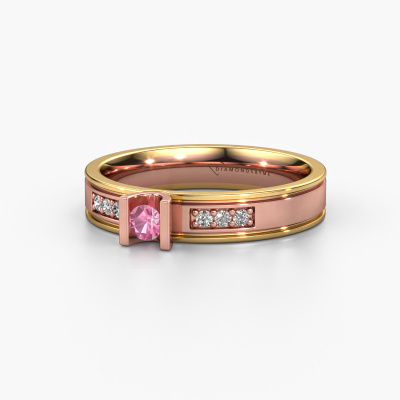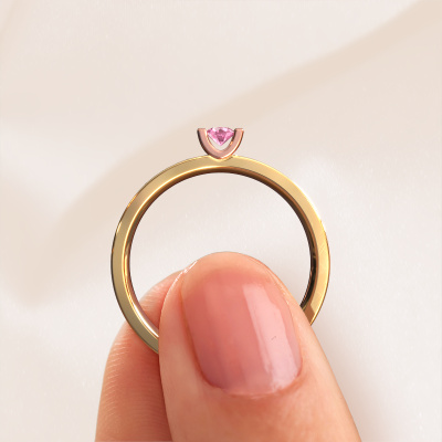 This modern ladies wedding ring is a stunning, contemporary wedding ring which truly symbolizes your unique love! Perfectly suited for men with a contemporary style. Simply customize the ring to your liking. Our goldsmith would take on any challenge of creating a perfect ring and will work on your ring, designed by you, in our own artisan studio. He will carefully and passionately create your WH2108L14A wedding ring by hand whilst using the most modern techniques, combined with pure craftsmanship. And this results in a unique, contemporary ring! This modern WH2108L14A wedding ring is set with round pink sapphire, is ±0.16 in wide and has a shiny finish. You can choose the combination of precious metals of your preference in our online tool. Anything goes! It is wise to browse through the characteristics of each different precious metal. For example, gold and silver are softer metals. Carat is determined by the amount of added extra metals. If the goldsmith doesn't add a lot, carat is higher and the wedding ring will be softer. If he adds more metals, the jewel has a lower amount of carat. A softer precious metal can still be used for your modern wedding ring! If you prefer a precious metal which will last a lifetime, we recommend platinum. This is the most solid and durable metal our goldsmith uses.Be inspired by our designs, and adjust this wedding ring to your own personal taste: wider or smaller, shiny or matte? No problem! Even if you have ideas of your own for special wedding rings, our jewellery designers are lined up to help you design the ring of your dreams. don't hesitate to contact us!Because we design and deliver our own wedding rings, we can offer you wedding rings at a price you won't find anywhere else. A ring is made to order, which helps prevent excess supplies, so we can make you a great price offer.To make it easier for you, we offer a 30 day return policy. Check our terms and conditions.