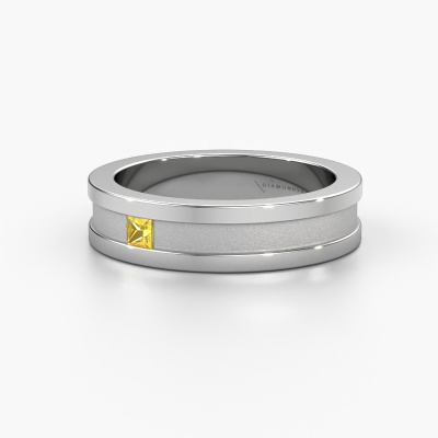 To create your ladies wedding ring in our artisan studio, we use the most modern techniques, combined with ancient craftsmanship. The end result is this modern WH2001L wedding ring, which is crafted to perfection by hand by our goldsmiths. A ring that fills us with pride. This white gold WH2001L ladies wedding ring with court profile has an ±0.20 in width and has a shiny finish with yellow sapphire. The jewel designer, member of a specialized team, will make a graphic 3D design of your wedding ring. If it pleases you, you can also order a ring dummy so you can try it on and see your ring before creation. Subsequently, our goldsmith will create your unique wedding ring with great care in our own crafting studio. A meticulous job, because both creating as well as finishing your ring requires a keen eye. And that is what makes our craft special. Your unique wedding ring is the result of true passionate craftsmanship!Do you have specific wishes? Like a shiny ring, or a matte one? A wider band, or a smaller one? The possibilities of this wedding ring are endless. Be sure to contact our designers to adjust your ring to your personal taste. Did you see a ring somewhere, or do you have some special ideas of your own? Then don't hesitate to contact our designers and discuss your ideas for your own set of beautiful wedding rings. We are up for the challenge of creating the ring exactly the way you want it!After receiving your order, our goldsmiths will start the creative process of making your wedding rings. We don't keep stock. This is advantageous because these costs will not be passed on to you. Therefore, our quality wedding rings are always priced 30 percent lower than those of other jewellers.To make it easier for you, we offer a 30 day return policy. Check our terms and conditions.