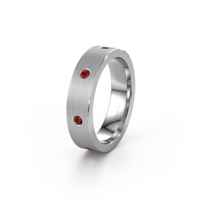 The modern Eternity wedding ring is a ring with a beautiful symbolic meaning. Because there appears to be no beginning nor end to the row of garnet. A beautiful way of expressing your everlasting love. A ring to wear until the end of all time, as a symbol of your union. This eternity WH0105L15BM ladies wedding ring has a width of ±0.20 in and is set with garnet 2 mm. After ordering your wedding ring, our goldsmith will start creating your wedding ring immediately. Did you know we use the latest modern techniques, combined with ancient craftsmanship? This helps to create a 3D design of your jewel. You can order a dummy ring, if you please. This way you can check if the wedding ring meets your standard. Then, our goldsmith, who strives for perfection, will create your ring in our own artisan studio completely by hand. We feel passionate creating a unique ring each time. One which is finished to perfection. In the end, you get a wedding ring which matches your wishes.By the way, you can be inspired by this wedding ring and have it further adjusted to your taste. Do you prefer a smaller band or a wider one? Do you prefer a shiny ring or a matte one? Anything is possible. Also, if you have an idea of your own for extraordinary wedding rings, or if you have seen a beautiful set somewhere else that you really like and would like to have adjusted to your personal taste: no problem! don't hesitate to contact us. Our designers will gladly discuss your possibilities with you!Because we design and deliver our own wedding rings, we can offer you wedding rings at a price you won't find anywhere else. A ring is made to order, which helps prevent excess supplies, so we can make you a great price offer.To make it easier for you, we offer a 30 day return policy. Check our terms and conditions.