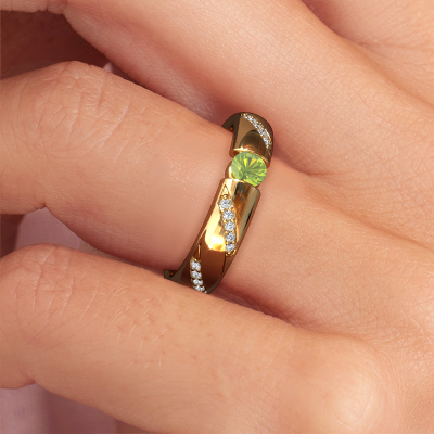This exclusive ladies wedding ring is a melting pot of ancient craftsmanship, love, passion and the latest techniques. It requires a keen eye, patience and a skilful hand to create this gold wedding ring to perfection. And perfection is what our goldsmiths strive for! This way, you create an exclusive ring, which is customized to your liking and made by hand in our own artisan studio. This exclusive WH2102L34A wedding ring is set with peridot 4 mm, is ±0.20 in wide and has a shiny finish.