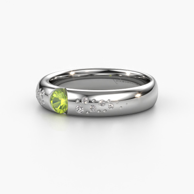 This modern ladies wedding ring is a melting pot of ancient craftsmanship, love, passion and the latest techniques. It requires a keen eye, patience and a skilful hand to create this white gold wedding ring to perfection. And perfection is what our goldsmiths strive for! This way, you create an exclusive ring, which is customized to your liking and made by hand in our own artisan studio. This modern WH2104L34A wedding ring is set with peridot 4 mm, is ±0.18 in wide and has a shiny finish. Gold represents love and therefore our goldsmith loves using it in the design of your modern wedding ring. We are a proud member of the Responsible Jewellery Council. This means we only use eco-friendly gold. Something we take great pride in, obviously. It is also possible to use your own gold in the design of your wedding ring. Each jewel is made by hand in our own artisan studio so we can offer this option. This gives you the opportunity to add an extra personal touch to your ring. A ring with its own history!Do you have specific wishes? Like a shiny ring, or a matte one? A wider band, or a smaller one? The possibilities of this wedding ring are endless. Be sure to contact our designers to adjust your ring to your personal taste. Did you see a ring somewhere, or do you have some special ideas of your own? Then don't hesitate to contact our designers and discuss your ideas for your own set of beautiful wedding rings. We are up for the challenge of creating the ring exactly the way you want it!Because we design our wedding rings ourselves, and deliver it directly to you, we can offer you wedding rings at a price you won't find anywhere else. Our rings are made to order, which helps prevent excess supplies, so we can make you a great price offer.To make it easier for you, we offer a 30 day return policy. Check our terms and conditions.