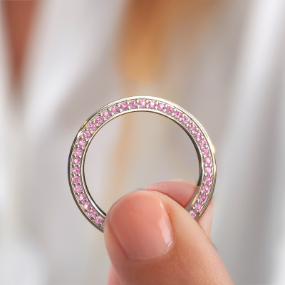 If you are looking for an exclusive, exclusive wedding ring with an exquisite look, this ring is perfect for you. Because it can be customized to your style, this wedding ring can be turned into a unique, exclusive piece of jewellery. This exclusive ladies wedding ring is a perfect combination of ancient craftsmanship, love, passion and the latest modern techniques. This exclusive WH2029AM wedding ring is set with pink sapphire 1.2 mm, is ±0.20 in wide and has a shiny finish. Gold represents love and therefore our goldsmith loves using it in the design of your exclusive wedding ring. We are a proud member of the Responsible Jewellery Council. This means we only use eco-friendly gold. Something we take great pride in, obviously. It is also possible to use your own gold in the design of your wedding ring. Each jewel is made by hand in our own artisan studio so we can offer this option. This gives you the opportunity to add an extra personal touch to your ring. A ring with its own history!Do you have specific wishes? Like a shiny ring, or a matte one? A wider band, or a smaller one? The possibilities of this wedding ring are endless. Be sure to contact our designers to adjust your ring to your personal taste. Did you see a ring somewhere, or do you have some special ideas of your own? Then don't hesitate to contact our designers and discuss your ideas for your own set of beautiful wedding rings. We are up for the challenge of creating the ring exactly the way you want it!After receiving your order, our goldsmiths will start the creative process of making your wedding rings in our own crafting studio. We don't keep stock. This is advantageous because these costs will not be passed on to you. Therefore, we can offer the finest quality jewellery at exceptionally low prices.To make it easier for you, we offer a 30 day return policy. Check our terms and conditions.