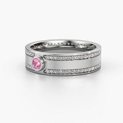 If you are looking for an exclusive, exclusive wedding ring with an exquisite look, this ring is perfect for you. Because it can be customized to your style, this wedding ring can be turned into a unique, exclusive piece of jewellery. This exclusive ladies wedding ring is a perfect combination of ancient craftsmanship, love, passion and the latest modern techniques. This exclusive WH2044P wedding ring is set with pink sapphire 3 mm, is ±0.24 in wide and has a shiny finish. The jewel designer, member of a specialized team, will make a graphic 3D design of your wedding ring. If it pleases you, you can also order a ring dummy so you can try it on and see your ring before creation. Subsequently, our goldsmith will create your unique wedding ring with great care in our own crafting studio. A meticulous job, because both creating as well as finishing your ring requires a keen eye. And that is what makes our craft special. Your unique wedding ring is the result of true passionate craftsmanship!This wedding ring can also serve as a source of inspiration. Would you like the ring to have a matte or shiny finish (at no additional cost), or would you prefer it to be wider or narrower? Anything is possible. Because there are countless variations, we can’t show everything on our website. Do you have an idea for beautiful wedding rings, or have you seen a stunning set of wedding rings elsewhere? Feel free to contact us; our designers are ready to assist you.After receiving your order, our goldsmiths will start the creative process of making your wedding rings. We don't keep stock. This is advantageous because these costs will not be passed on to you. Therefore, our quality wedding rings are always priced 30 percent lower than those of other jewellers.To make it easier for you, we offer a 30 day return policy. Check our terms and conditions.