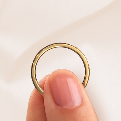 If you are looking for an exclusive, exclusive wedding ring with an exquisite look, this ring is perfect for you. Because it can be customized to your style, this wedding ring can be turned into a unique, exclusive piece of jewellery. This exclusive ladies wedding ring is a perfect combination of ancient craftsmanship, love, passion and the latest modern techniques. This exclusive WH0803L25AP wedding ring is set with pink sapphire 1.3 mm, is ±0.20 in wide and has a shiny finish. You can choose the combination of precious metals of your preference in our online tool. Anything goes! It is wise to browse through the characteristics of each different precious metal. For example, gold and silver are softer metals. Carat is determined by the amount of added extra metals. If the goldsmith doesn't add a lot, carat is higher and the wedding ring will be softer. If he adds more metals, the jewel has a lower amount of carat. A softer precious metal can still be used for your exclusive wedding ring! If you prefer a precious metal which will last a lifetime, we recommend platinum. This is the most solid and durable metal our goldsmith uses.By the way, you can be inspired by this wedding ring and have it further adjusted to your taste. Do you prefer a smaller band or a wider one? Do you prefer a shiny ring or a matte one? Anything is possible. Also, if you have an idea of your own for extraordinary wedding rings, or if you have seen a beautiful set somewhere else that you really like and would like to have adjusted to your personal taste: no problem! don't hesitate to contact us. Our designers will gladly discuss your possibilities with you!By combining our modern techniques with ancient crafting, we can design and customize the finest quality jewels with the utmost care for you at the best price. Our wedding rings are always priced 30% lower than those of other jewellers. We make wedding rings to order so we don't have to maintain a large stock.To make it easier for you, we offer a 30 day return policy. Check our terms and conditions.
