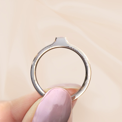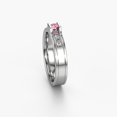 A unique two-tone platinum ladies wedding ring, designed by you, and then artfully crafted by our goldsmith in our own artisan studio! A beautiful symbol, reflecting your love, which you carry with you for a lifetime! Each ring we offer is artfully forged by hand in our own crafting studio. This makes it possible for us to create you a ring which is customized to your liking, completely shiny your style. This modern WH2110L14A wedding ring is set with pink sapphire, is ±0.16 in wide and has a shiny finish. The jewel designer, member of a specialized team, will make a graphic 3D design of your wedding ring. If it pleases you, you can also order a ring dummy so you can try it on and see your ring before creation. Subsequently, our goldsmith will create your unique wedding ring with great care in our own crafting studio. A meticulous job, because both creating as well as finishing your ring requires a keen eye. And that is what makes our craft special. Your unique wedding ring is the result of true passionate craftsmanship!Do you have specific wishes? Like a shiny ring, or a matte one? A wider band, or a smaller one? The possibilities of this wedding ring are endless. Be sure to contact our designers to adjust your ring to your personal taste. Did you see a ring somewhere, or do you have some special ideas of your own? Then don't hesitate to contact our designers and discuss your ideas for your own set of beautiful wedding rings. We are up for the challenge of creating the ring exactly the way you want it!By combining our modern techniques with ancient crafting, we can design and customize the finest quality jewels with the utmost care for you at the best price. Our wedding rings are always priced 30% lower than those of other jewellers. We make wedding rings to order so we don't have to maintain a large stock.To make it easier for you, we offer a 30 day return policy. Check our terms and conditions.