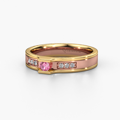 A unique two-tone rose gold ladies wedding ring, designed by you, and then artfully crafted by our goldsmith in our own artisan studio! A beautiful symbol, reflecting your love, which you carry with you for a lifetime! Each ring we offer is artfully forged by hand in our own crafting studio. This makes it possible for us to create you a ring which is customized to your liking, completely shiny your style. This modern WH2110L14A wedding ring is set with pink sapphire, is ±0.16 in wide and has a shiny finish. The jewel designer, member of a specialized team, will make a graphic 3D design of your wedding ring. If it pleases you, you can also order a ring dummy so you can try it on and see your ring before creation. Subsequently, our goldsmith will create your unique wedding ring with great care in our own crafting studio. A meticulous job, because both creating as well as finishing your ring requires a keen eye. And that is what makes our craft special. Your unique wedding ring is the result of true passionate craftsmanship!Do you have specific wishes? Like a shiny ring, or a matte one? A wider band, or a smaller one? The possibilities of this wedding ring are endless. Be sure to contact our designers to adjust your ring to your personal taste. Did you see a ring somewhere, or do you have some special ideas of your own? Then don't hesitate to contact our designers and discuss your ideas for your own set of beautiful wedding rings. We are up for the challenge of creating the ring exactly the way you want it!By combining our modern techniques with ancient crafting, we can design and customize the finest quality jewels with the utmost care for you at the best price. Our wedding rings are always priced 30% lower than those of other jewellers. We make wedding rings to order so we don't have to maintain a large stock.To make it easier for you, we offer a 30 day return policy. Check our terms and conditions.