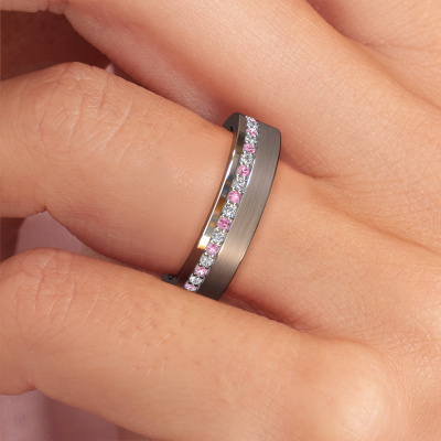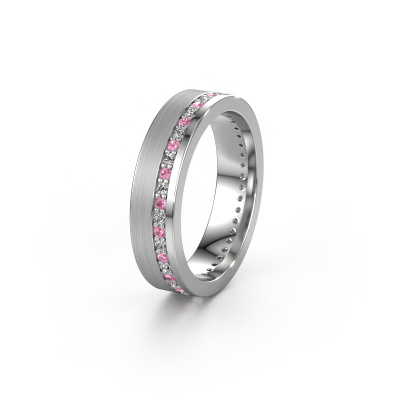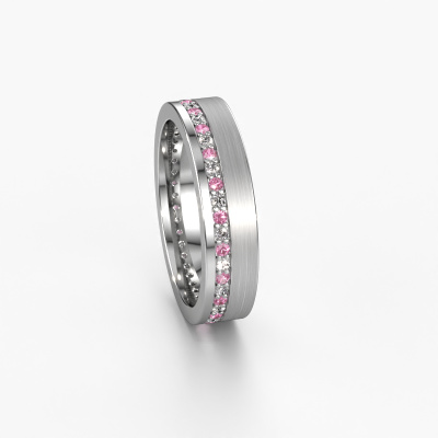 Did you know the Eternity wedding ring not only looks good, but that this wedding ring also has its own beautiful symbolical meaning? The Eternity wedding ring, with perfectly aligned smaller sized gemstones, represents your eternal love. Because the ring is pave set with gemstones, it appears to have no beginning nor end. Beautiful, wouldn't you agree? This special WH0303L15BPM ladies wedding ring has a width of ±0.20 in and is set with pink sapphire 1.3 mm. The jewel designer, member of a specialized team, will make a graphic 3D design of your wedding ring. If it pleases you, you can also order a ring dummy so you can try it on and see your ring before creation. Subsequently, our goldsmith will create your unique wedding ring with great care in our own crafting studio. A meticulous job, because both creating as well as finishing your ring requires a keen eye. And that is what makes our craft special. Your unique wedding ring is the result of true passionate craftsmanship!This wedding ring can also serve as a source of inspiration. Would you like the ring to have a matte or shiny finish (at no additional cost), or would you prefer it to be wider or narrower? Anything is possible. Because there are countless variations, we can’t show everything on our website. Do you have an idea for beautiful wedding rings, or have you seen a stunning set of wedding rings elsewhere? Feel free to contact us; our designers are ready to assist you.Because we design and deliver our own wedding rings, we can offer you wedding rings at a price you won't find anywhere else. A ring is made to order, which helps prevent excess supplies, so we can make you a great price offer.To make it easier for you, we offer a 30 day return policy. Check our terms and conditions.
