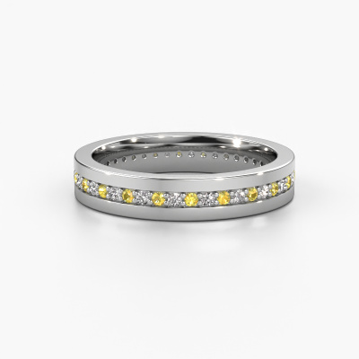 Did you know the Eternity wedding ring not only looks good, but that this wedding ring also has its own beautiful symbolical meaning? The Eternity wedding ring, with perfectly aligned smaller sized gemstones, represents your eternal love. Because the ring is pave set with gemstones, it appears to have no beginning nor end. Beautiful, wouldn't you agree? This royal WH0103L14BP ladies wedding ring has a width of ±0.16 in and is set with yellow sapphire 1.3 mm. You can choose the combination of precious metals of your preference in our online tool. Anything goes! It is wise to browse through the characteristics of each different precious metal. For example, gold and silver are softer metals. Carat is determined by the amount of added extra metals. If the goldsmith doesn't add a lot, carat is higher and the wedding ring will be softer. If he adds more metals, the jewel has a lower amount of carat. A softer precious metal can still be used for your luxury wedding ring! If you prefer a precious metal which will last a lifetime, we recommend platinum. This is the most solid and durable metal our goldsmith uses.Do you have specific wishes regarding your wedding ring, but are you having difficulties finding the design on our website? The be sure to contact our designers! For instance, we can make the band smaller or wider. Do you prefer a matte finish? We can do that! Engravings are a great way of personalizing your rings, and applicable on most designs. Or, if you have an idea of your own for your extraordinary wedding rings, contact us! Our designers are up for the challenge of designing the ring of your dreams!After receiving your order, our goldsmiths will passionately start the creative process of making your wedding rings in our own artisan studio. Because we do not maintain a large stockpile, we can offer our jewellery at a lower price than other jewellers. Our pricing is proof of that! We offer top quality jewels at lowest price, guaranteed.To make it easier for you, we offer a 30 day return policy. Check our terms and conditions.