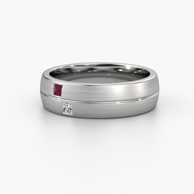 A unique two-tone platinum ladies wedding ring, designed by you, and then artfully crafted by our goldsmith in our own artisan studio! A beautiful symbol, reflecting your love, which you carry with you for a lifetime! Each ring we offer is artfully forged by hand in our own crafting studio. This makes it possible for us to create you a ring which is customized to your liking, completely mat your style. This modern WH0250L26BM wedding ring is set with rhodolite, is ±0.24 in wide and has a matte finish. After designing your ring, our jewel designer will start working on it. He will make a graphic 3D design of your wedding ring. This can also be used to make a dummy ring. Simply order a dummy ring and see for yourself how your ring will turn out. Subsequently, our expert goldsmith will create your ring in our own artisan studio. We use eco-friendly gold, so you get a ring, we are proud of, which looks good inside and out. You can also send us your own gold. Because we create your ring by hand, we can use your own gold. Our goal is to create an exquisite sparkling wedding ring just as envisioned it!By the way, you can be inspired by this wedding ring and have it further adjusted to your taste. Do you prefer a smaller band or a wider one? Do you prefer a shiny ring or a matte one? Anything is possible. Also, if you have an idea of your own for extraordinary wedding rings, or if you have seen a beautiful set somewhere else that you really like and would like to have adjusted to your personal taste: no problem! don't hesitate to contact us. Our designers will gladly discuss your possibilities with you!Because we design our wedding rings ourselves, and deliver it directly to you, we can offer you wedding rings at a price you won't find anywhere else. Our rings are made to order, which helps prevent excess supplies, so we can make you a great price offer.To make it easier for you, we offer a 30 day return policy. Check our terms and conditions.