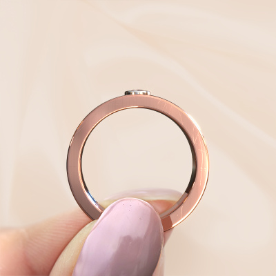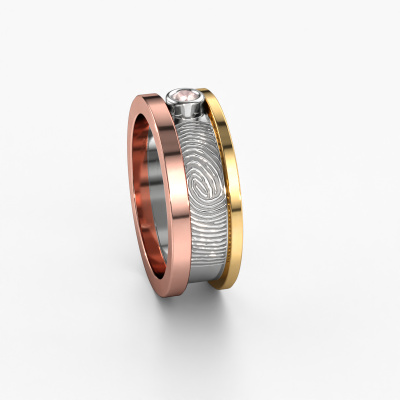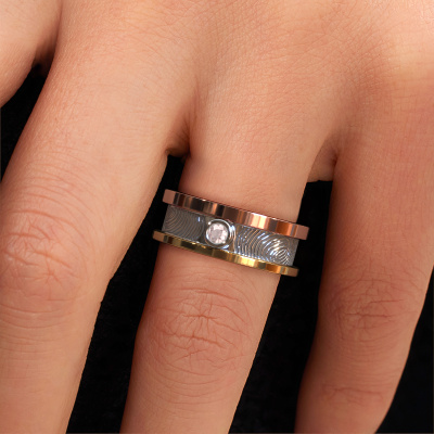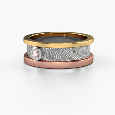 What could be more unique than a fingerprint? That makes this ladies wedding ring with morganite champagne special. A personal fingerprint of your loved one, engraved tot the symbol of your everlasting love. Wouldn't it be lovely to slide this fantasy wedding ring around the finger of your partner on your wedding day? How does it work? First you order the wedding ring after customizing it to your liking. Once your order is placed, you send us an e-mail with the fingerprint you would like to use. For further instructions on how to make a fingerprint, check our database at the bottom of this page. This Francisca wedding ring has an ±0.28 in width.