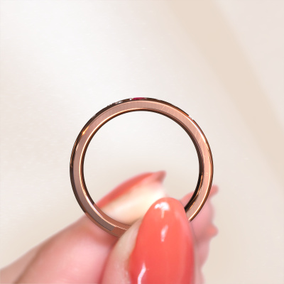 If you are looking for an exclusive, fantasy wedding ring with an exquisite look, this ring is perfect for you. Because it can be customized to your style, this wedding ring can be turned into a unique, exclusive piece of jewellery. This fantasy ladies wedding ring is a perfect combination of ancient craftsmanship, love, passion and the latest modern techniques. This fantasy WH0141L26BP wedding ring is set with ruby 3 mm, is ±0.28 in wide and has a shiny finish. Simply customize your gemstones and colours with our online tool. Our jewel designers will make a 3D drawing of your design, so you can see the result. Our goldsmiths will subsequently make your wedding ring by hand, according ancient craftsmanship. Our goal is to make the wedding ring you have in mind. A unique wedding ring to match your style completely!Do you have specific wishes? Like a shiny ring, or a matte one? A wider band, or a smaller one? The possibilities of this wedding ring are endless. Be sure to contact our designers to adjust your ring to your personal taste. Did you see a ring somewhere, or do you have some special ideas of your own? Then don't hesitate to contact our designers and discuss your ideas for your own set of beautiful wedding rings. We are up for the challenge of creating the ring exactly the way you want it!After receiving your order, our goldsmiths will start the creative process of making your wedding rings in our own crafting studio. We don't keep stock. This is advantageous because these costs will not be passed on to you. Therefore, we can offer the finest quality jewellery at exceptionally low prices.To make it easier for you, we offer a 30 day return policy. Check our terms and conditions.