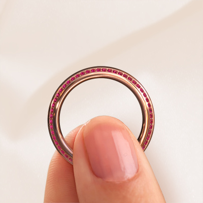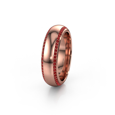 This luxury ladies wedding ring is a melting pot of ancient craftsmanship, love, passion and the latest techniques. It requires a keen eye, patience and a skilful hand to create this rose gold wedding ring to perfection. And perfection is what our goldsmiths strive for! This way, you create an exclusive ring, which is customized to your liking and made by hand in our own artisan studio. This luxury WH6132L36C wedding ring is set with ruby 1 mm, is ±0.24 in wide and has a shiny finish. The jewel designer, member of a specialized team, will make a graphic 3D design of your wedding ring. If it pleases you, you can also order a ring dummy so you can try it on and see your ring before creation. Subsequently, our goldsmith will create your unique wedding ring with great care in our own crafting studio. A meticulous job, because both creating as well as finishing your ring requires a keen eye. And that is what makes our craft special. Your unique wedding ring is the result of true passionate craftsmanship!Be inspired by our designs, and adjust this wedding ring to your own personal taste: wider or smaller, shiny or matte? No problem! Even if you have ideas of your own for special wedding rings, our jewellery designers are lined up to help you design the ring of your dreams. don't hesitate to contact us!Because we design and deliver our own wedding rings, we can offer you wedding rings at a price you won't find anywhere else. A ring is made to order, which helps prevent excess supplies, so we can make you a great price offer.To make it easier for you, we offer a 30 day return policy. Check our terms and conditions.