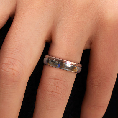 A unique two-tone white gold ladies wedding ring, designed by you, and then artfully crafted by our goldsmith in our own artisan studio! A beautiful symbol, reflecting your love, which you carry with you for a lifetime! Each ring we offer is artfully forged by hand in our own crafting studio. This makes it possible for us to create you a ring which is customized to your liking, completely shiny your style. This traditional WH0301L35AP wedding ring is set with sapphire, is ±0.20 in wide and has a shiny finish. You can choose the combination of precious metals of your preference in our online tool. Anything goes! It is wise to browse through the characteristics of each different precious metal. For example, gold and silver are softer metals. Carat is determined by the amount of added extra metals. If the goldsmith doesn't add a lot, carat is higher and the wedding ring will be softer. If he adds more metals, the jewel has a lower amount of carat. A softer precious metal can still be used for your traditional wedding ring! If you prefer a precious metal which will last a lifetime, we recommend platinum. This is the most solid and durable metal our goldsmith uses.Do you have special preferences regarding your wedding ring? For instance, a smaller or a wider band? Or perhaps a shiny or a matte ring? There are numerous variations possible. You can always discuss the possibilities with our jewellery designers. If you have certain wedding rings in mind, our designers will gladly help by drawing the rings of your dreams. Be sure to contact us!After receiving your order, our goldsmiths will start the creative process of making your wedding rings. We don't keep stock. This is advantageous because these costs will not be passed on to you. Therefore, our quality wedding rings are always priced 30 percent lower than those of other jewellers.To make it easier for you, we offer a 30 day return policy. Check our terms and conditions.