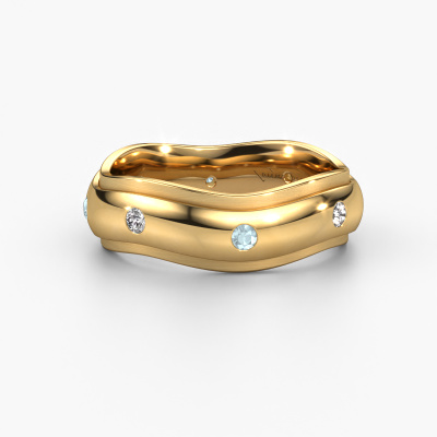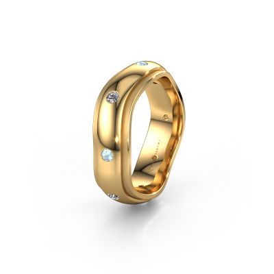 What a perfect combination of two different precious metals. They seem to reinforce each other in the modern design of this ring! Our goldsmith would be honoured to create a unique ring for you, customized to your liking. Each ladies wedding ring we offer is artfully crafted by hand in our own artisan studio. That makes it possible for us to turn modern into reality and helps create your own personal ring, customized to your style. This modern WH2051L26DP ladies wedding ring is set with round aquamarine, is ±0.24 in wide and has a mat/shiny finish.