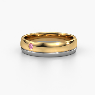 What a perfect combination of two different precious metals. They seem to reinforce each other in the modern design of this ring! Our goldsmith would be honoured to create a unique ring for you, customized to your liking. Each ladies wedding ring we offer is artfully crafted by hand in our own artisan studio. That makes it possible for us to turn modern into reality and helps create your own personal ring, customized to your style. This modern WH0301L25AP ladies wedding ring is set with round pink sapphire, is ±0.20 in wide and has a shiny finish. After ordering your wedding ring, our goldsmith will start creating your wedding ring immediately. Did you know we use the latest modern techniques, combined with ancient craftsmanship? This helps to create a 3D design of your jewel. You can order a dummy ring, if you please. This way you can check if the wedding ring meets your standard. Then, our goldsmith, who strives for perfection, will create your ring in our own artisan studio completely by hand. We feel passionate creating a unique ring each time. One which is finished to perfection. In the end, you get a wedding ring which matches your wishes.Do you have special preferences regarding your wedding ring? For instance, a smaller or a wider band? Or perhaps a shiny or a matte ring? There are numerous variations possible. You can always discuss the possibilities with our jewellery designers. If you have certain wedding rings in mind, our designers will gladly help by drawing the rings of your dreams. Be sure to contact us!Because we design and deliver our own wedding rings, we can offer you wedding rings at a price you won't find anywhere else. A ring is made to order, which helps prevent excess supplies, so we can make you a great price offer.To make it easier for you, we offer a 30 day return policy. Check our terms and conditions.