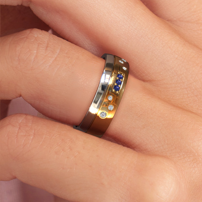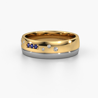 What a perfect combination of two different precious metals. They seem to reinforce each other in the traditional design of this ring! Our goldsmith would be honoured to create a unique ring for you, customized to your liking. Each ladies wedding ring we offer is artfully crafted by hand in our own artisan studio. That makes it possible for us to turn traditional into reality and helps create your own personal ring, customized to your style. This traditional WH0310L26AP ladies wedding ring is set with round sapphire, is ±0.24 in wide and has a shiny finish. You can choose the combination of precious metals of your preference in our online tool. Anything goes! It is wise to browse through the characteristics of each different precious metal. For example, gold and silver are softer metals. Carat is determined by the amount of added extra metals. If the goldsmith doesn't add a lot, carat is higher and the wedding ring will be softer. If he adds more metals, the jewel has a lower amount of carat. A softer precious metal can still be used for your traditional wedding ring! If you prefer a precious metal which will last a lifetime, we recommend platinum. This is the most solid and durable metal our goldsmith uses.Do you have specific wishes? Like a shiny ring, or a matte one? A wider band, or a smaller one? The possibilities of this wedding ring are endless. Be sure to contact our designers to adjust your ring to your personal taste. Did you see a ring somewhere, or do you have some special ideas of your own? Then don't hesitate to contact our designers and discuss your ideas for your own set of beautiful wedding rings. We are up for the challenge of creating the ring exactly the way you want it!After receiving your order, our goldsmiths will passionately start the creative process of making your wedding rings in our own artisan studio. Because we do not maintain a large stockpile, we can offer our jewellery at a lower price than other jewellers. Our pricing is proof of that! We offer top quality jewels at lowest price, guaranteed.To make it easier for you, we offer a 30 day return policy. Check our terms and conditions.