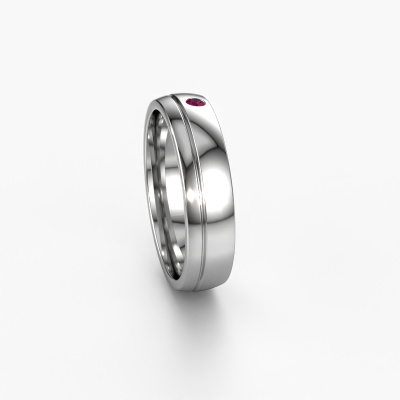 What a perfect combination of two different precious metals. They seem to reinforce each other in the modern design of this ring! Our goldsmith would be honoured to create a unique ring for you, customized to your liking. Each ladies wedding ring we offer is artfully crafted by hand in our own artisan studio. That makes it possible for us to turn modern into reality and helps create your own personal ring, customized to your style. This modern WH0301L25AP ladies wedding ring is set with round rhodolite, is ±0.20 in wide and has a shiny finish. After ordering your wedding ring, our goldsmith will start creating your wedding ring immediately. Did you know we use the latest modern techniques, combined with ancient craftsmanship? This helps to create a 3D design of your jewel. You can order a dummy ring, if you please. This way you can check if the wedding ring meets your standard. Then, our goldsmith, who strives for perfection, will create your ring in our own artisan studio completely by hand. We feel passionate creating a unique ring each time. One which is finished to perfection. In the end, you get a wedding ring which matches your wishes.Do you have special preferences regarding your wedding ring? For instance, a smaller or a wider band? Or perhaps a shiny or a matte ring? There are numerous variations possible. You can always discuss the possibilities with our jewellery designers. If you have certain wedding rings in mind, our designers will gladly help by drawing the rings of your dreams. Be sure to contact us!Because we design and deliver our own wedding rings, we can offer you wedding rings at a price you won't find anywhere else. A ring is made to order, which helps prevent excess supplies, so we can make you a great price offer.To make it easier for you, we offer a 30 day return policy. Check our terms and conditions.