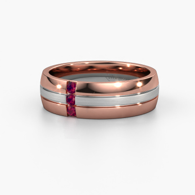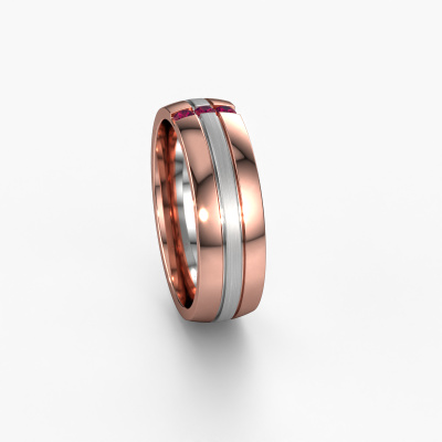 What a perfect combination of two different precious metals. They seem to reinforce each other in the modern design of this ring! Our goldsmith would be honoured to create a unique ring for you, customized to your liking. Each ladies wedding ring we offer is artfully crafted by hand in our own artisan studio. That makes it possible for us to turn modern into reality and helps create your own personal ring, customized to your style. This modern WH0426L26A ladies wedding ring is set with round rhodolite, is ±0.24 in wide and has a mat/shiny finish. The jewel designer, member of a specialized team, will make a graphic 3D design of your wedding ring. If it pleases you, you can also order a ring dummy so you can try it on and see your ring before creation. Subsequently, our goldsmith will create your unique wedding ring with great care in our own crafting studio. A meticulous job, because both creating as well as finishing your ring requires a keen eye. And that is what makes our craft special. Your unique wedding ring is the result of true passionate craftsmanship!Do you have special preferences regarding your wedding ring? For instance, a smaller or a wider band? Or perhaps a shiny or a matte ring? There are numerous variations possible. You can always discuss the possibilities with our jewellery designers. If you have certain wedding rings in mind, our designers will gladly help by drawing the rings of your dreams. Be sure to contact us!After receiving your order, our goldsmiths will passionately start the creative process of making your wedding rings in our own artisan studio. Because we do not maintain a large stockpile, we can offer our jewellery at a lower price than other jewellers. Our pricing is proof of that! We offer top quality jewels at lowest price, guaranteed.To make it easier for you, we offer a 30 day return policy. Check our terms and conditions.