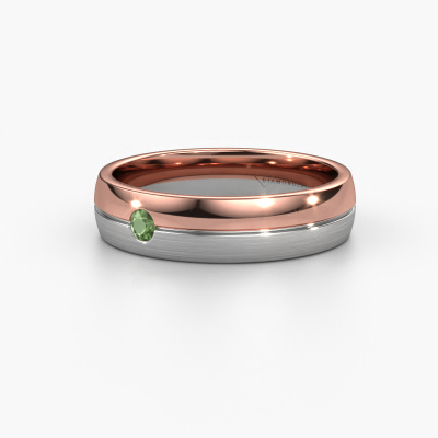 What a perfect combination of two different precious metals. They seem to reinforce each other in the modern design of this ring! Our goldsmith would be honoured to create a unique ring for you, customized to your liking. Each ladies wedding ring we offer is artfully crafted by hand in our own artisan studio. That makes it possible for us to turn modern into reality and helps create your own personal ring, customized to your style. This modern WH0201L25APM ladies wedding ring is set with round tourmaline green, is ±0.20 in wide and has a mat/shiny finish. Simply customize your gemstones and colours with our online tool. Our jewel designers will make a 3D drawing of your design, so you can see the result. Our goldsmiths will subsequently make your wedding ring by hand, according ancient craftsmanship. Our goal is to make the wedding ring you have in mind. A unique wedding ring to match your style completely!By the way, you can be inspired by this wedding ring and have it further adjusted to your taste. Do you prefer a smaller band or a wider one? Do you prefer a shiny ring or a matte one? Anything is possible. Also, if you have an idea of your own for extraordinary wedding rings, or if you have seen a beautiful set somewhere else that you really like and would like to have adjusted to your personal taste: no problem! don't hesitate to contact us. Our designers will gladly discuss your possibilities with you!Because we design our wedding rings ourselves, and deliver it directly to you, we can offer you wedding rings at a price you won't find anywhere else. Our rings are made to order, which helps prevent excess supplies, so we can make you a great price offer.To make it easier for you, we offer a 30 day return policy. Check our terms and conditions.