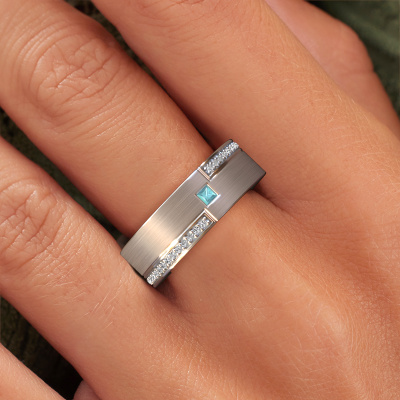 This exclusive ladies wedding ring is a stunning, contemporary wedding ring which truly symbolizes your unique love! Perfectly suited for men with a contemporary style. Simply customize the ring to your liking. Our goldsmith would take on any challenge of creating a perfect ring and will work on your ring, designed by you, in our own artisan studio. He will carefully and passionately create your WH2048L17DM ±0.28x0.09in wedding ring by hand whilst using the most modern techniques, combined with pure craftsmanship. And this results in a unique, contemporary ring! This exclusive WH2048L17DM wedding ring is set with princess blue topaz is ±0.28 in wide and has a matte finish. Simply customize your gemstones and colours with our online tool. Our jewel designers will make a 3D drawing of your design, so you can see the result. Our goldsmiths will subsequently make your wedding ring by hand, according ancient craftsmanship. Our goal is to make the wedding ring you have in mind. A unique wedding ring to match your style completely!By the way, you can be inspired by this wedding ring and have it further adjusted to your taste. Do you prefer a smaller band or a wider one? Do you prefer a shiny ring or a matte one? Anything is possible. Also, if you have an idea of your own for extraordinary wedding rings, or if you have seen a beautiful set somewhere else that you really like and would like to have adjusted to your personal taste: no problem! don't hesitate to contact us. Our designers will gladly discuss your possibilities with you!By combining our modern techniques with ancient crafting, we can design and customize the finest quality jewels with the utmost care for you at the best price. Our wedding rings are always priced 30% lower than those of other jewellers. We make wedding rings to order so we don't have to maintain a large stock.To make it easier for you, we offer a 30 day return policy. Check our terms and conditions.