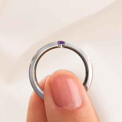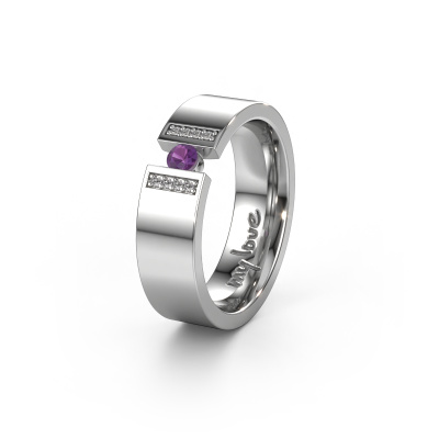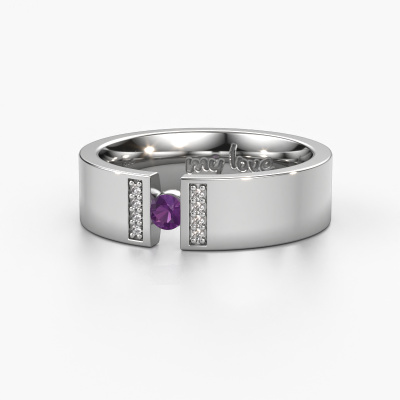 A unique wedding ring with amethyst! What makes this ladies wedding ring WH2096L16C special, is that you can have it engraved with a special text, which has meaning to you. A word, a short phrase or part of the lyrics to a song. Whichever text is most meaningful to you. Memorialize it as an exquisite engravement on this modern wedding ring. This own Text ladies wedding ring has an ±0.24 in width. Simply customize your gemstones and colours with our online tool. Our jewel designers will make a 3D drawing of your design, so you can see the result. Our goldsmiths will subsequently make your wedding ring by hand, according ancient craftsmanship. Our goal is to make the wedding ring you have in mind. A unique wedding ring to match your style completely!This wedding ring can also serve as a source of inspiration. Would you like the ring to have a matte or shiny finish (at no additional cost), or would you prefer it to be wider or narrower? Anything is possible. Because there are countless variations, we can’t show everything on our website. Do you have an idea for beautiful wedding rings, or have you seen a stunning set of wedding rings elsewhere? Feel free to contact us; our designers are ready to assist you.After receiving your order, our goldsmiths will start the creative process of making your wedding rings. We don't keep stock. This is advantageous because these costs will not be passed on to you. Therefore, our quality wedding rings are always priced 30 percent lower than those of other jewellers.To make it easier for you, we offer a 30 day return policy. Check our terms and conditions.