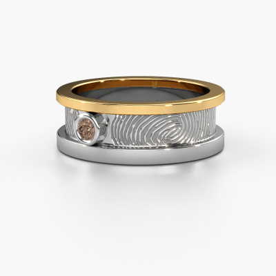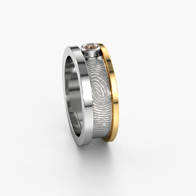 What could be more unique than a fingerprint? That makes this ladies wedding ring with brown diamond special. A personal fingerprint of your loved one, engraved tot the symbol of your everlasting love. Wouldn't it be lovely to slide this fantasy wedding ring around the finger of your partner on your wedding day? How does it work? First you order the wedding ring after customizing it to your liking. Once your order is placed, you send us an e-mail with the fingerprint you would like to use. For further instructions on how to make a fingerprint, check our database at the bottom of this page. This Francisca wedding ring has an ±0.28 in width. After ordering your wedding ring, our goldsmith will start creating your wedding ring immediately. Did you know we use the latest modern techniques, combined with ancient craftsmanship? This helps to create a 3D design of your jewel. You can order a dummy ring, if you please. This way you can check if the wedding ring meets your standard. Then, our goldsmith, who strives for perfection, will create your ring in our own artisan studio completely by hand. We feel passionate creating a unique ring each time. One which is finished to perfection. In the end, you get a wedding ring which matches your wishes.By the way, you can be inspired by this wedding ring and have it further adjusted to your taste. Do you prefer a smaller band or a wider one? Do you prefer a shiny ring or a matte one? Anything is possible. Also, if you have an idea of your own for extraordinary wedding rings, or if you have seen a beautiful set somewhere else that you really like and would like to have adjusted to your personal taste: no problem! don't hesitate to contact us. Our designers will gladly discuss your possibilities with you!After receiving your order, our goldsmiths will start the creative process of making your wedding rings. We don't keep stock. This is advantageous because these costs will not be passed on to you. Therefore, our quality wedding rings are always priced 30 percent lower than those of other jewellers.To make it easier for you, we offer a 30 day return policy. Check our terms and conditions.