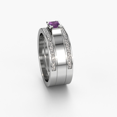 A truly stylish 14 Carat exclusive wedding ring! This exquisite ladies wedding ring, as shown above, is set with princess amethyst. Our goldsmiths make each white gold wedding ring by hand in our own artisan studio and because of that, the amethysten are set with the utmost precision. This causes light to reflect evenly from every angle of the amethyst. The width of this exclusive WH2121L wedding ring is ±0.31 in and the finish is shiny. Choosing a wedding ring is not done on a whim. In the end, you want a ring that completely matches your style and preferences. A reflection of your love and relationship. A ring to last a lifetime. A symbol of all that unites you. Creating your dream ring is what gets us excited. This is artfully done by hand in our own crafting studio, so we can create your ring to perfection. The most rewarding job in the world!Do you have specific wishes? Like a shiny ring, or a matte one? A wider band, or a smaller one? The possibilities of this wedding ring are endless. Be sure to contact our designers to adjust your ring to your personal taste. Did you see a ring somewhere, or do you have some special ideas of your own? Then don't hesitate to contact our designers and discuss your ideas for your own set of beautiful wedding rings. We are up for the challenge of creating the ring exactly the way you want it!After receiving your order, our goldsmiths will start the creative process of making your wedding rings in our own crafting studio. We don't keep stock. This is advantageous because these costs will not be passed on to you. Therefore, we can offer the finest quality jewellery at exceptionally low prices.To make it easier for you, we offer a 30 day return policy. Check our terms and conditions.