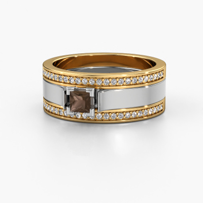 A truly stylish 14 Carat exclusive wedding ring! This exquisite ladies wedding ring, as shown above, is set with princess smokey quartz. Our goldsmiths make each gold wedding ring by hand in our own artisan studio and because of that, the smokey quartz are set with the utmost precision. This causes light to reflect evenly from every angle of the smokey quartz. The width of this exclusive WH2121L wedding ring is ±0.31 in and the finish is shiny. Choosing a wedding ring is not done on a whim. In the end, you want a ring that completely matches your style and preferences. A reflection of your love and relationship. A ring to last a lifetime. A symbol of all that unites you. Creating your dream ring is what gets us excited. This is artfully done by hand in our own crafting studio, so we can create your ring to perfection. The most rewarding job in the world!Do you have specific wishes? Like a shiny ring, or a matte one? A wider band, or a smaller one? The possibilities of this wedding ring are endless. Be sure to contact our designers to adjust your ring to your personal taste. Did you see a ring somewhere, or do you have some special ideas of your own? Then don't hesitate to contact our designers and discuss your ideas for your own set of beautiful wedding rings. We are up for the challenge of creating the ring exactly the way you want it!After receiving your order, our goldsmiths will start the creative process of making your wedding rings in our own crafting studio. We don't keep stock. This is advantageous because these costs will not be passed on to you. Therefore, we can offer the finest quality jewellery at exceptionally low prices.To make it easier for you, we offer a 30 day return policy. Check our terms and conditions.