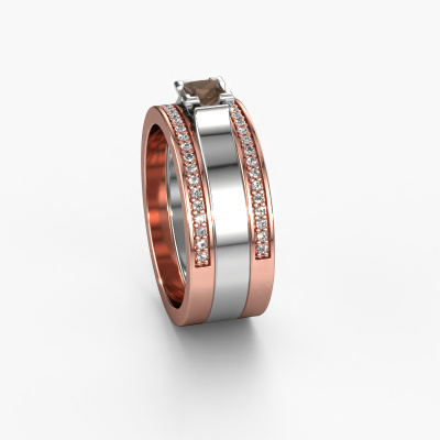 A truly stylish 14 Carat exclusive wedding ring! This exquisite ladies wedding ring, as shown above, is set with princess smokey quartz. Our goldsmiths make each rose gold wedding ring by hand in our own artisan studio and because of that, the smokey quartz are set with the utmost precision. This causes light to reflect evenly from every angle of the smokey quartz. The width of this exclusive WH2121L wedding ring is ±0.31 in and the finish is shiny. Choosing a wedding ring is not done on a whim. In the end, you want a ring that completely matches your style and preferences. A reflection of your love and relationship. A ring to last a lifetime. A symbol of all that unites you. Creating your dream ring is what gets us excited. This is artfully done by hand in our own crafting studio, so we can create your ring to perfection. The most rewarding job in the world!Do you have specific wishes? Like a shiny ring, or a matte one? A wider band, or a smaller one? The possibilities of this wedding ring are endless. Be sure to contact our designers to adjust your ring to your personal taste. Did you see a ring somewhere, or do you have some special ideas of your own? Then don't hesitate to contact our designers and discuss your ideas for your own set of beautiful wedding rings. We are up for the challenge of creating the ring exactly the way you want it!After receiving your order, our goldsmiths will start the creative process of making your wedding rings in our own crafting studio. We don't keep stock. This is advantageous because these costs will not be passed on to you. Therefore, we can offer the finest quality jewellery at exceptionally low prices.To make it easier for you, we offer a 30 day return policy. Check our terms and conditions.