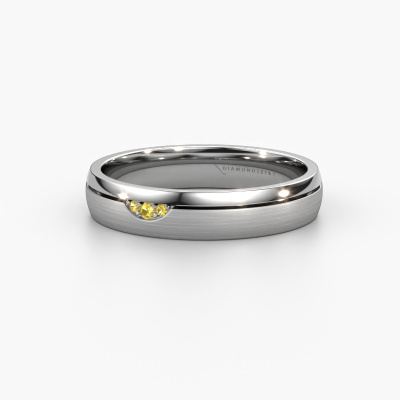 A unique two-tone platinum ladies wedding ring, designed by you, and then artfully crafted by our goldsmith in our own artisan studio! A beautiful symbol, reflecting your love, which you carry with you for a lifetime! Each ring we offer is artfully forged by hand in our own crafting studio. This makes it possible for us to create you a ring which is customized to your liking, completely mat/shiny your style. This contemporary WH0334L24X wedding ring is set with yellow sapphire, is ±0.16 in wide and has a mat/shiny finish. Choosing a wedding ring is not done on a whim. In the end, you want a ring that completely matches your style and preferences. A reflection of your love and relationship. A ring to last a lifetime. A symbol of all that unites you. Creating your dream ring is what gets us excited. This is artfully done by hand in our own crafting studio, so we can create your ring to perfection. The most rewarding job in the world!Do you have specific wishes regarding your wedding ring, but are you having difficulties finding the design on our website? The be sure to contact our designers! For instance, we can make the band smaller or wider. Do you prefer a matte finish? We can do that! Engravings are a great way of personalizing your rings, and applicable on most designs. Or, if you have an idea of your own for your extraordinary wedding rings, contact us! Our designers are up for the challenge of designing the ring of your dreams!Because we design our wedding rings ourselves, and deliver it directly to you, we can offer you wedding rings at a price you won't find anywhere else. Our rings are made to order, which helps prevent excess supplies, so we can make you a great price offer.To make it easier for you, we offer a 30 day return policy. Check our terms and conditions.